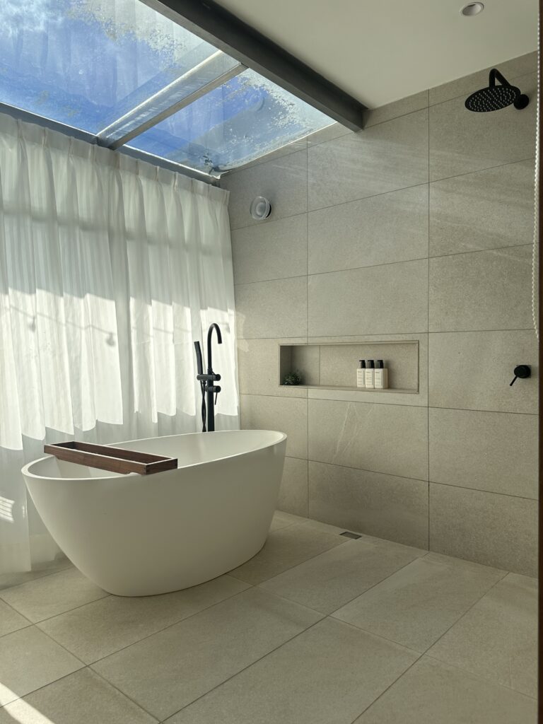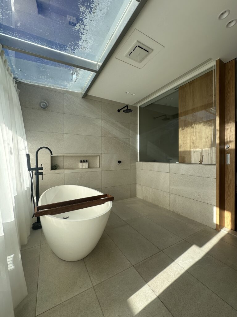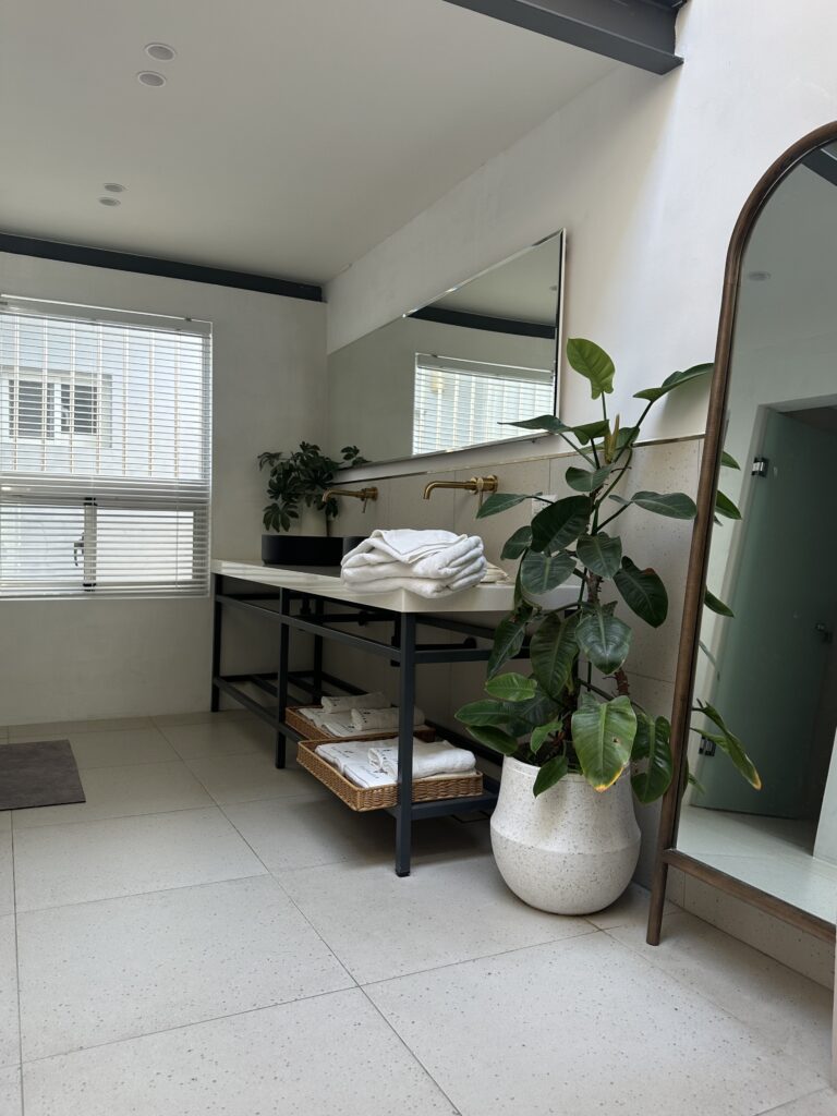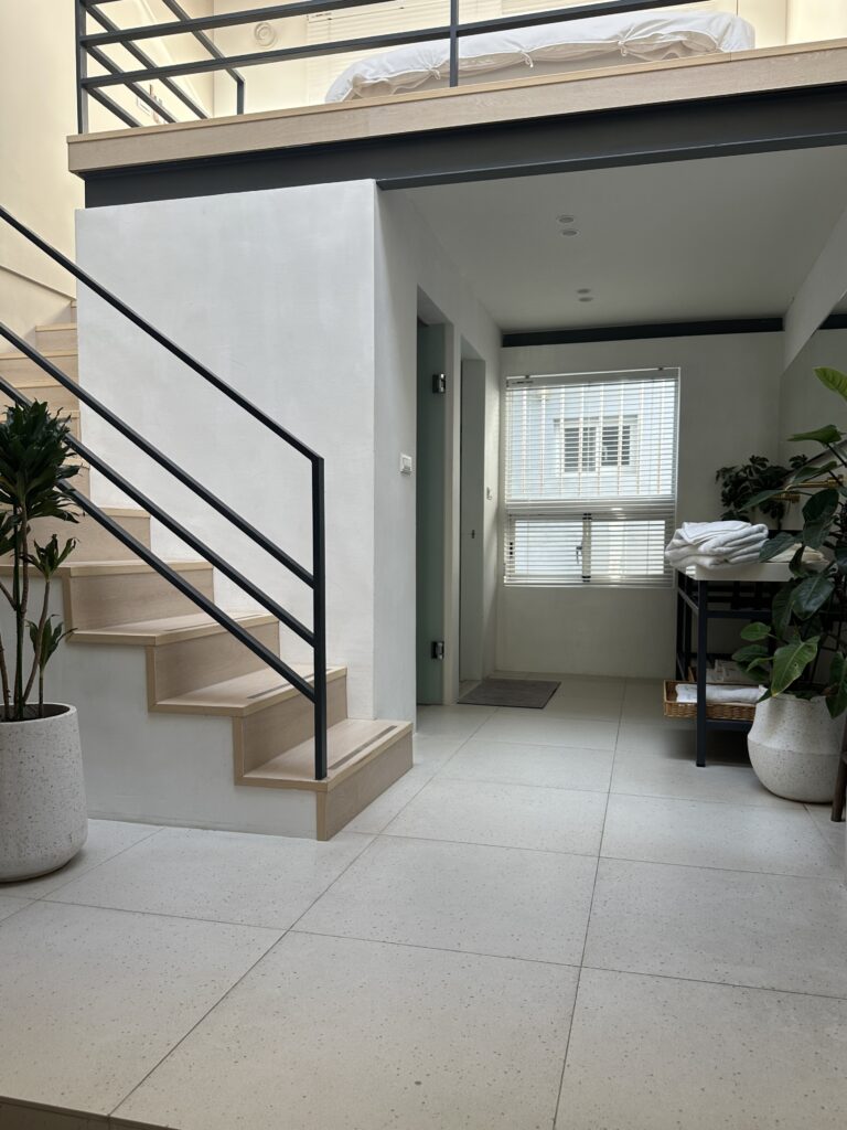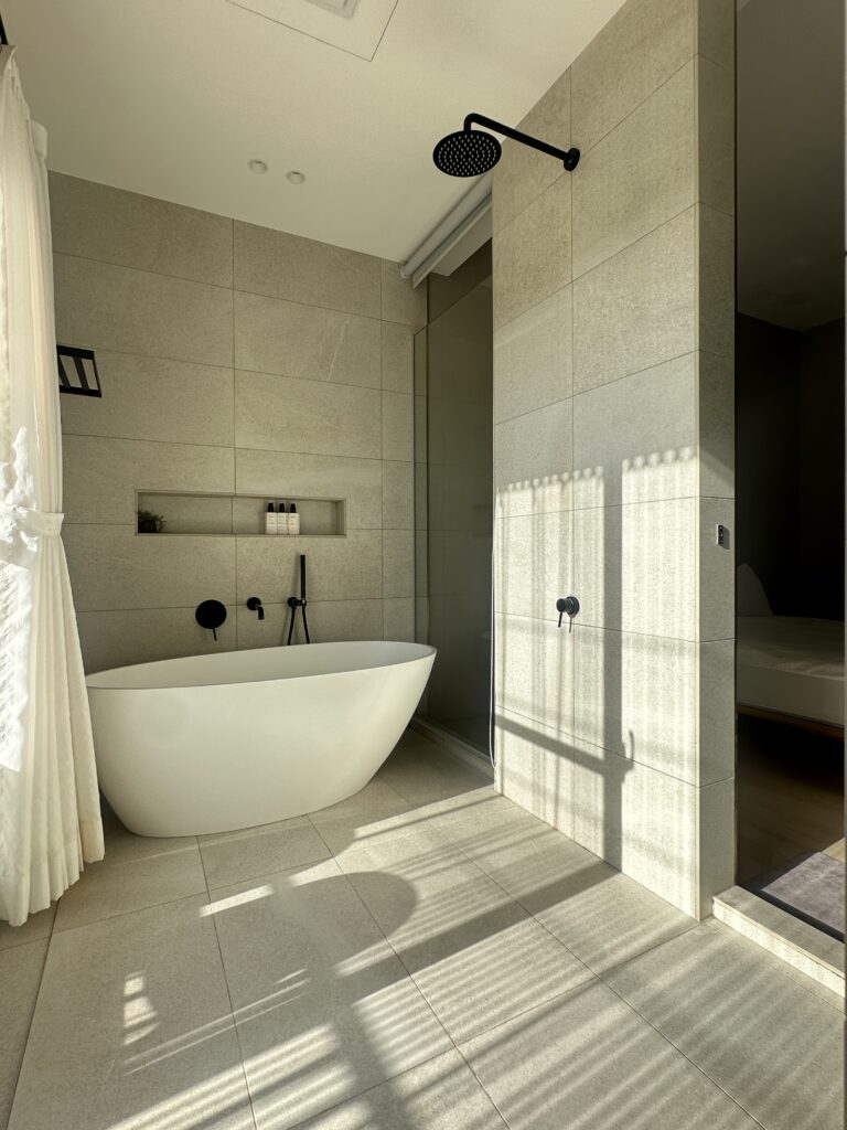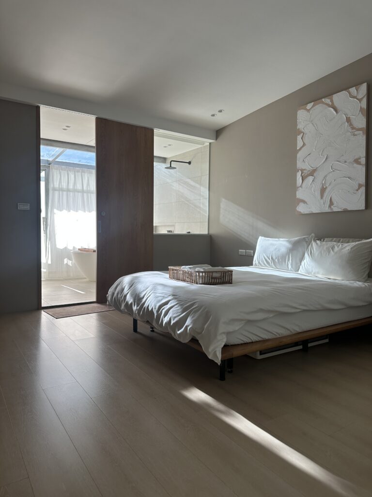 選用最能展現空間質感的小磨石紋磚,米色調的簡約基礎賦予來客舒心與放鬆,通透的光線引導視覺,在自然素材的基礎下,讓身心靈都沉靜下來。